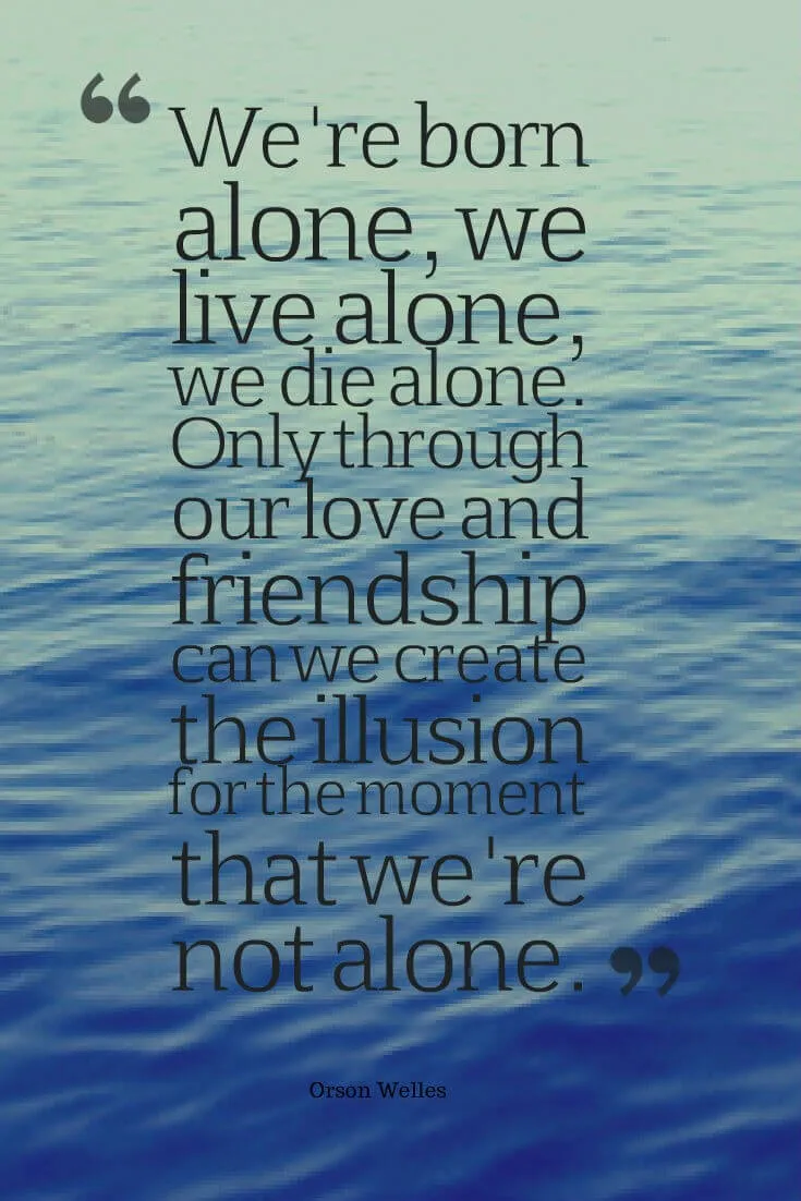 Truth be told, though, I don’t believe you are ever alone in this life. You always have someone or something nearby. Your mother when you are born, your friends and family through life, and a loving energy that surrounds you always.