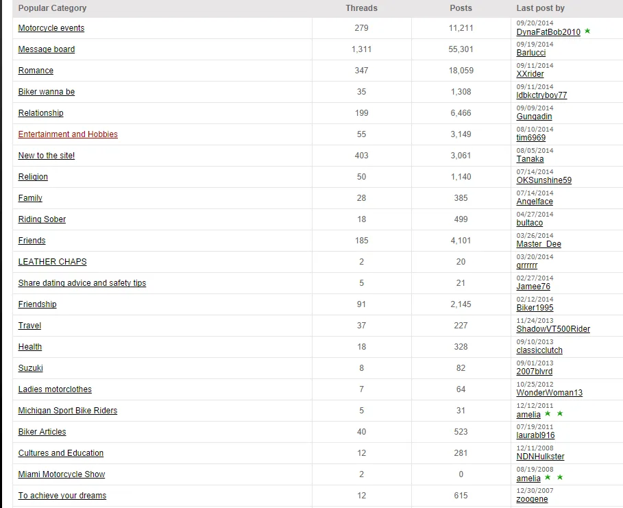 For instance, in the forum section, there is a ton of people talking about certain things such as romance, but also about travel, biker articles, motorcycle events, and even religion.
