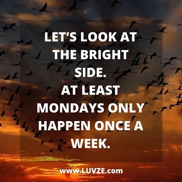 1. Mondays can be a real downer. But think of it this way. Was there anything about last week that you didn’t like? Maybe you didn’t get to go to the gym enough or you didn’t get a chance to make that new recipe that you wanted to try. Whatever you did not get to do last week, guess what? You have a chance to start over this week and this week starts with Monday. Give yourself a chance to do the things that you did not get to do.