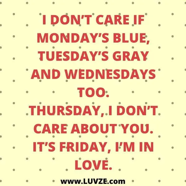 8. If Friday were a person, I would give it a big hug and a kiss.