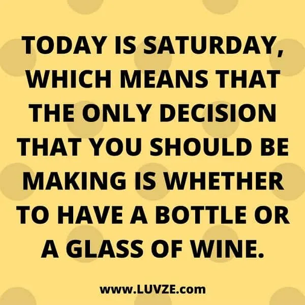90. Today is Saturday, which means that the only decision that you should be making is whether to have a bottle or a glass of wine.