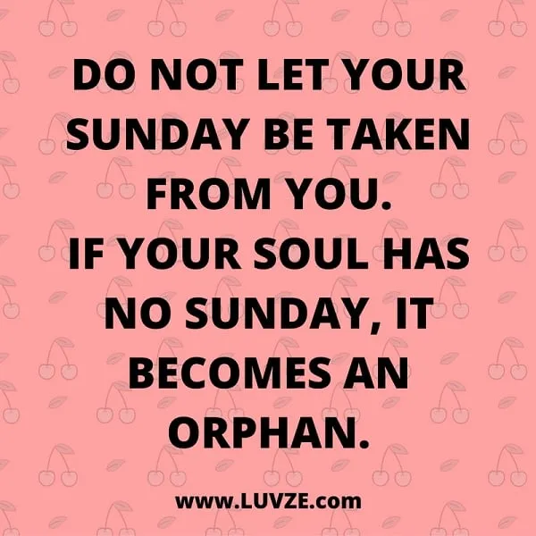 140. Do not let your Sunday be taken from you. If your soul has no Sunday, it becomes an orphan.
