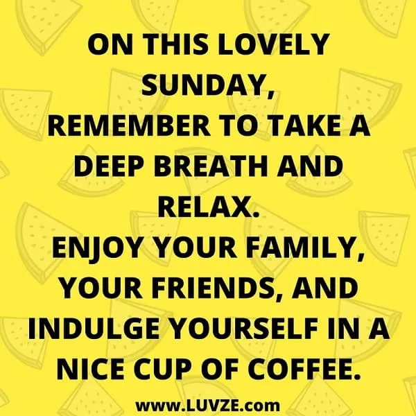121. Today is Stress-free Sunday. Sure, tomorrow is Monday and the beginning of your work, but do not worry about that today. Today, you should just relax and enjoy the rest of your weekend while you can.